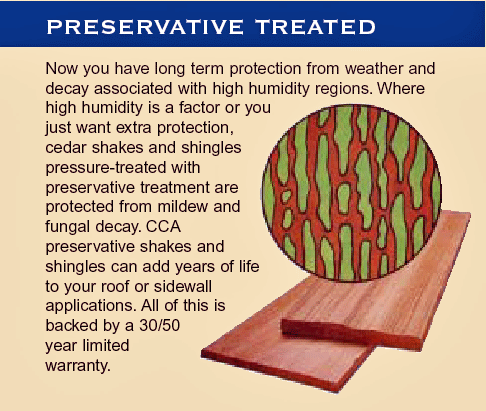 Pressure-treated fire-retardant shakes and shingles are time-tested for over two decades and accepted by the National Building Codes as an affective flame spreading and flying ember prevention treatment.
